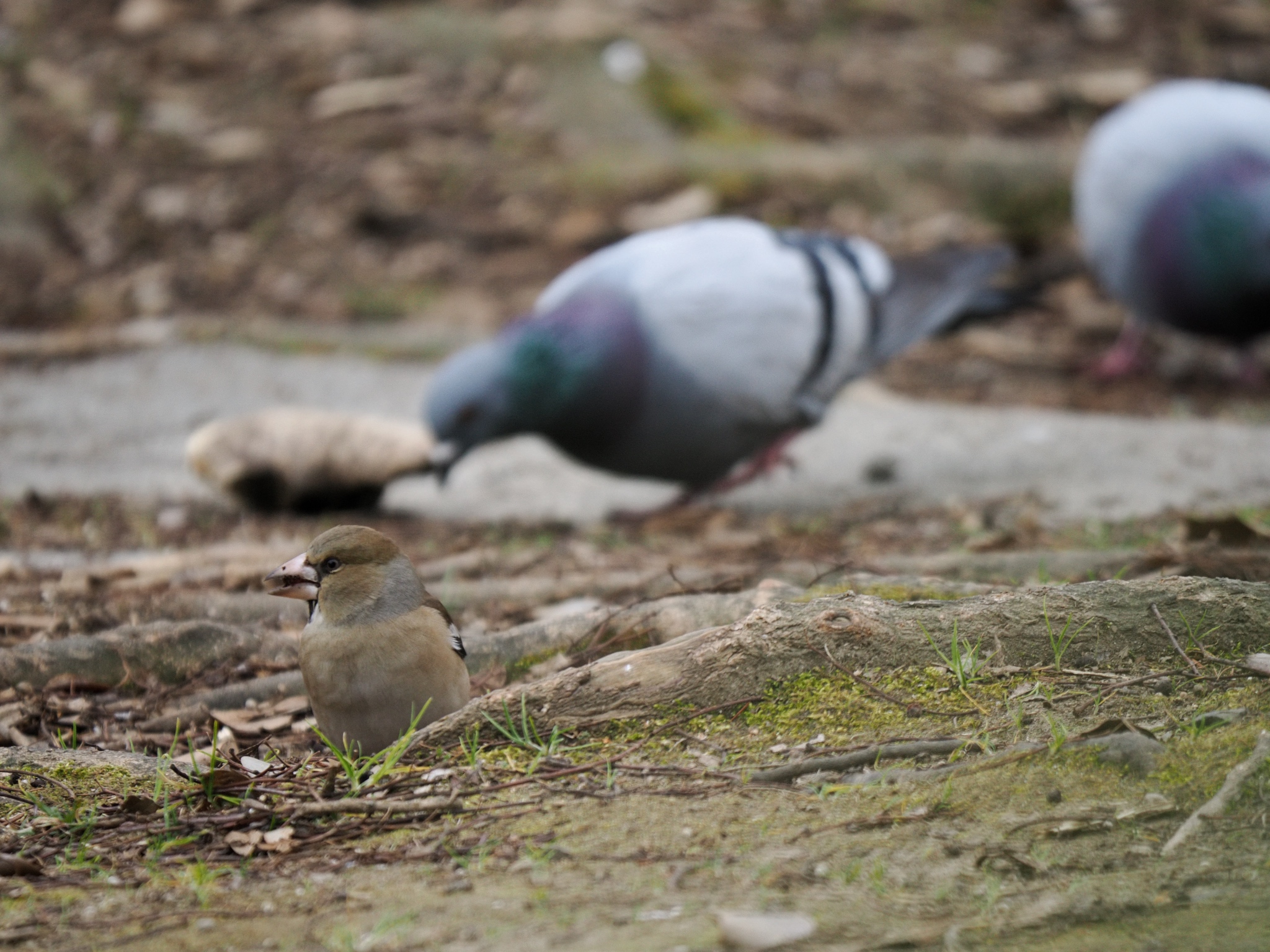 シメ、その背後からひっそり狙いを定めるドバト。